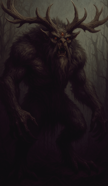 Der Bies gehört zu den gefährlichsten Kreaturen, die aus den tiefen Rissen gekrochen sind. Er ist ein Jäger – kein wildes Monster, sondern ein denkendes, berechnendes Wesen, das in den Schatten der Wälder, Ruinen und Gebirgstäler lebt. Seine Erscheinung ist furchteinflößend: ein massiger, humanoider Körper, überzogen mit verfilztem Fell, Narben und altem Blut, dazu ein Geweih von beeindruckender Spannweite, das zugleich Werkzeug und Waffe ist.